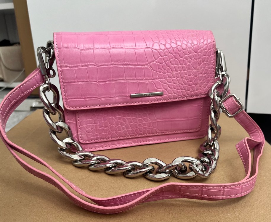 Bershka Pembe Zincir Detaylı Yılan Derisi Desenli Çanta - Görsel 1
