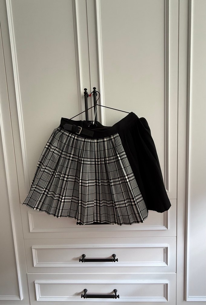 Bu bol kesim midi etek, siyah ekose desenli piliseli tasarıma sahiptir ve sentetik kumaştan üretilmiştir. Gotik Paris tarzına ve günlük kullanıma uygundur.