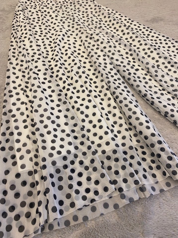 Bershka marka siyah beyaz puantiyeli tül/şifon kumaştan pantolon etek. Small beden. Yüksek bel oturumu çok rahat uçuş uçuştur. Sadece 2 kez kullandım bedenime olmuyor artık. Yeni gibidir.