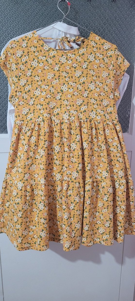 Sarı renkli, çiçek desenli, bol kesim ve v yaka detaylı . Yumuşak sentetik kumaştan,günlük tarzı için uygun. Ürün sayılı giyildi yazlik tiril tiril sık bir elbise yeni gibi s beden ama l bedene kadar olur Esnek kumas arkası ipli Ölçüleri fotolarda mevcuttur