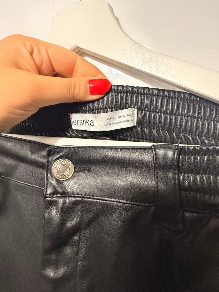 L beden,Bershka markasına ait, düğmeli ve parlak siyah deri , 2 kere giydim. 38-40 beden