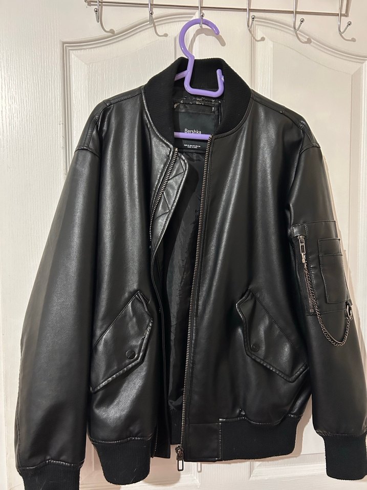 Bershka Siyah Deri Ceket - Rahat Kesim