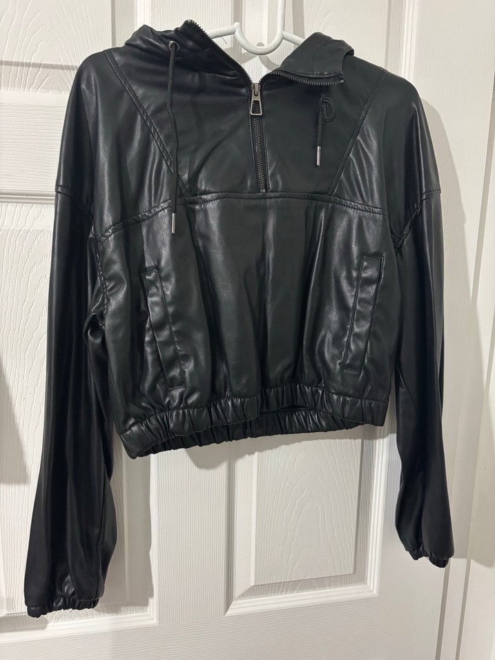 Bershka Siyah Deri Fermuarlı Kadın Ceket
