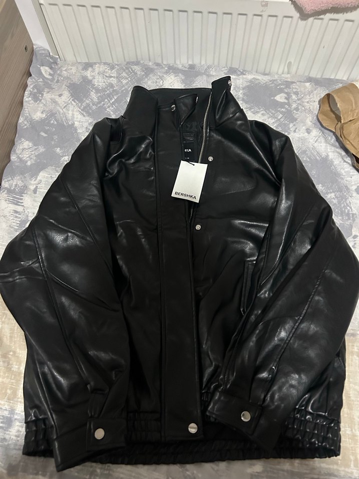 Bershka Siyah Deri Kadın Ceket, Yüksek Yakalı, Fermuarlı
