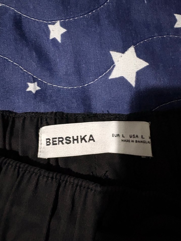 Bershka markalı siyah baskılı kumaş pantolon, oturan kesim ve tokalı detaylar ile günlük rahat sokak stiline uygundur. Asla deforme yoktur bir kere bile giyilmedi