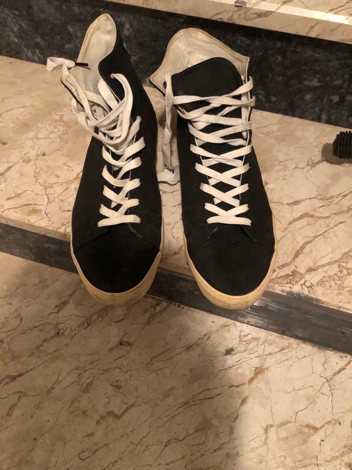 Erkekler için siyah ayakkabı bağcıklı , athleisure ve streetwear tarzını yansıtır. Günlük spor ayakkabılar için uygundur. Bir yerinde ufak bir açılma var resim ekledim