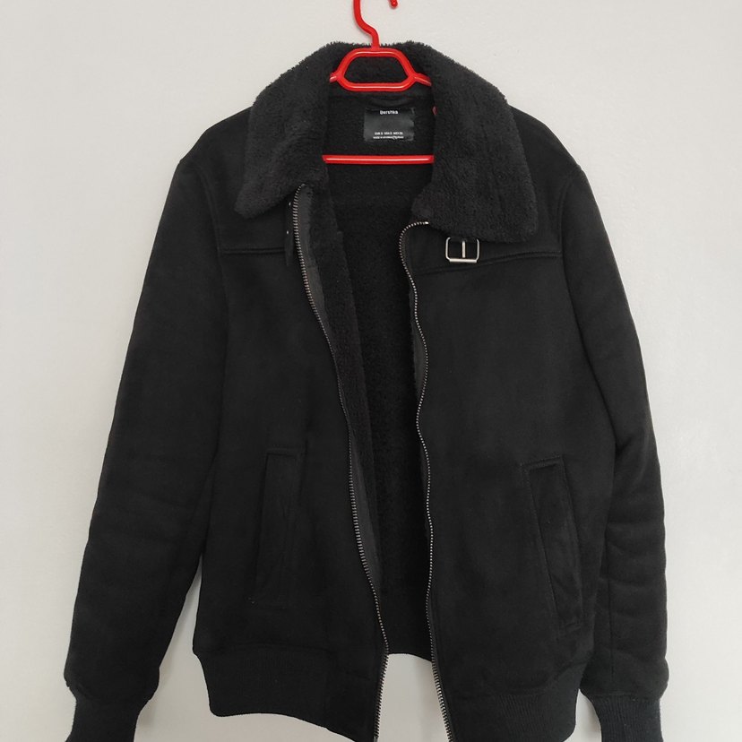 Bershka Siyah Fermuarlı Erkek Midi Mont