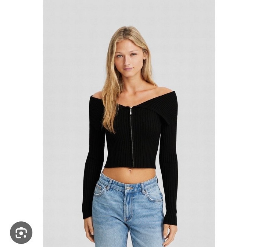 Bershka Siyah Fermuarlı Uzun Kollu Crop Top