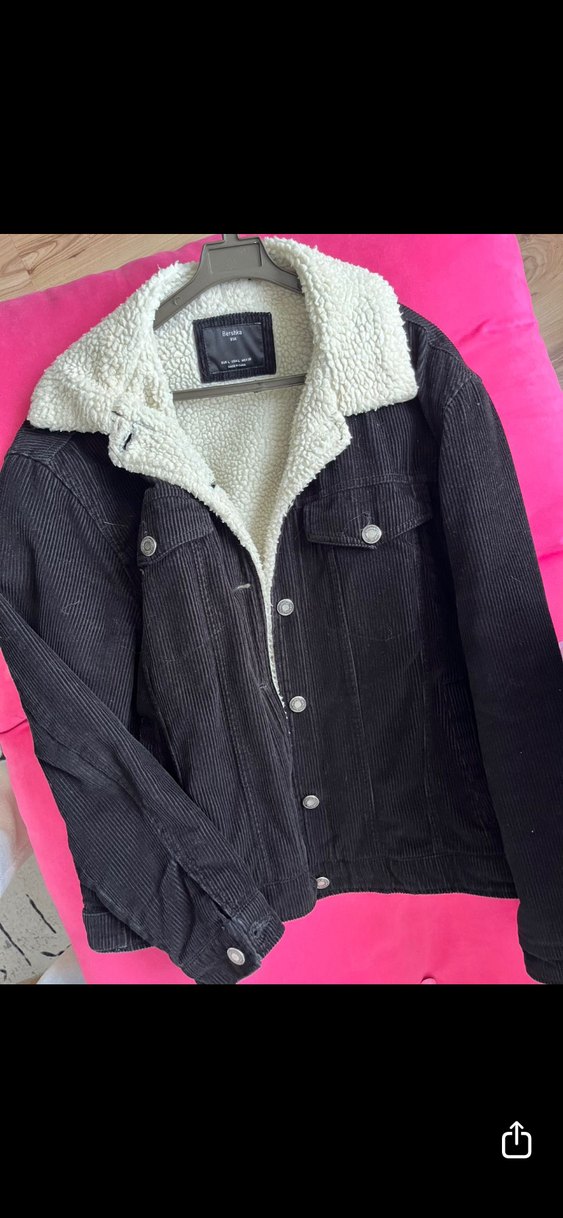 Düğmeli, siyah midi ceket; yakası kesik ve uzun kolludur. Yumuşak, sıcak fleece kumaştan yapılmış, günlük kullanıma uygun rahat ve şık bir sokak stili sunar. Kadife içi yünlü mont