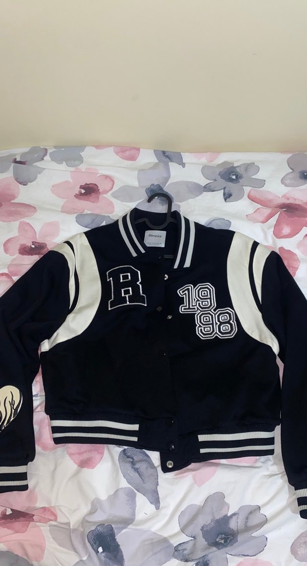 Siyah, uzun kollu kadın bomber ceket, düğmeli ve baskılı detaylara sahip. Yumuşak ve sıcak kumaştan, rahat kesimli spor stil için uygundur. 1 kere giyilmiştir. Herhangi bir hasarı yoktur. Fiyat konusunda yardımcı olmaya çalışırım yazabilirsiniz.