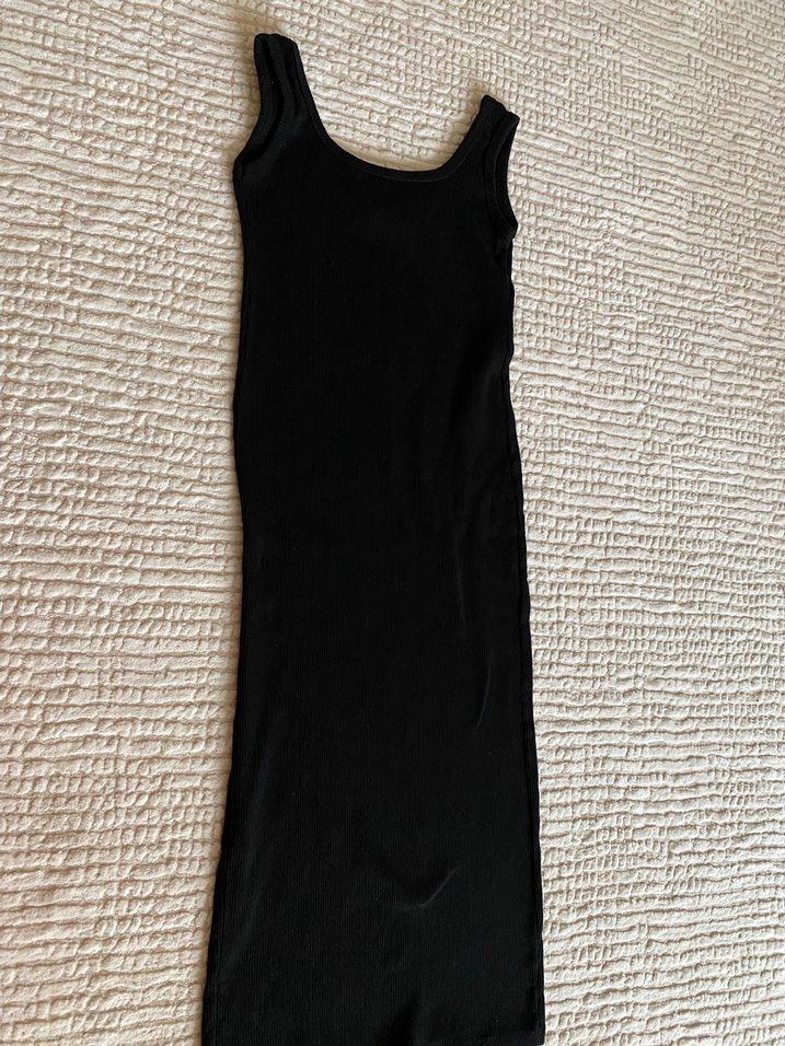 HİÇBİR PROBLEMİ YOKTUR Siyah, kolsuz, uzun ve vücuda oturan elbise, tek renk ve teknosentetik kumaştan. Minimalist gotik tarzıyla günlük kullanıma uygun.