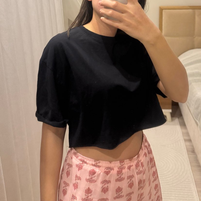 Bershka Siyah Kısa Kollu Crop Tshirt