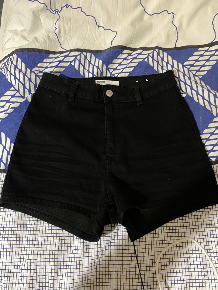 Siyah renkte, kısa ve vücuda oturan denim kadın şort. Günlük kullanıma uygun rahat ve şık bir sokak stili parçası. Etiket izi bile duruyor hiç kullanmadım. 38 Beden