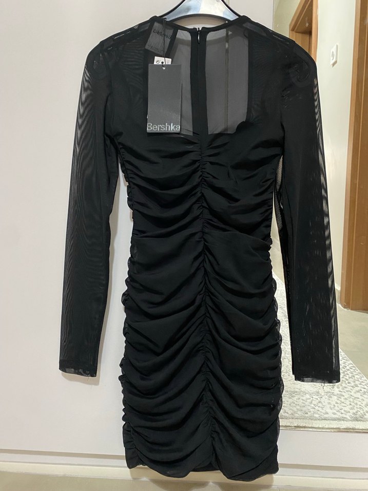 Bershka Siyah Pilili Uzun Kollu Midi Elbise