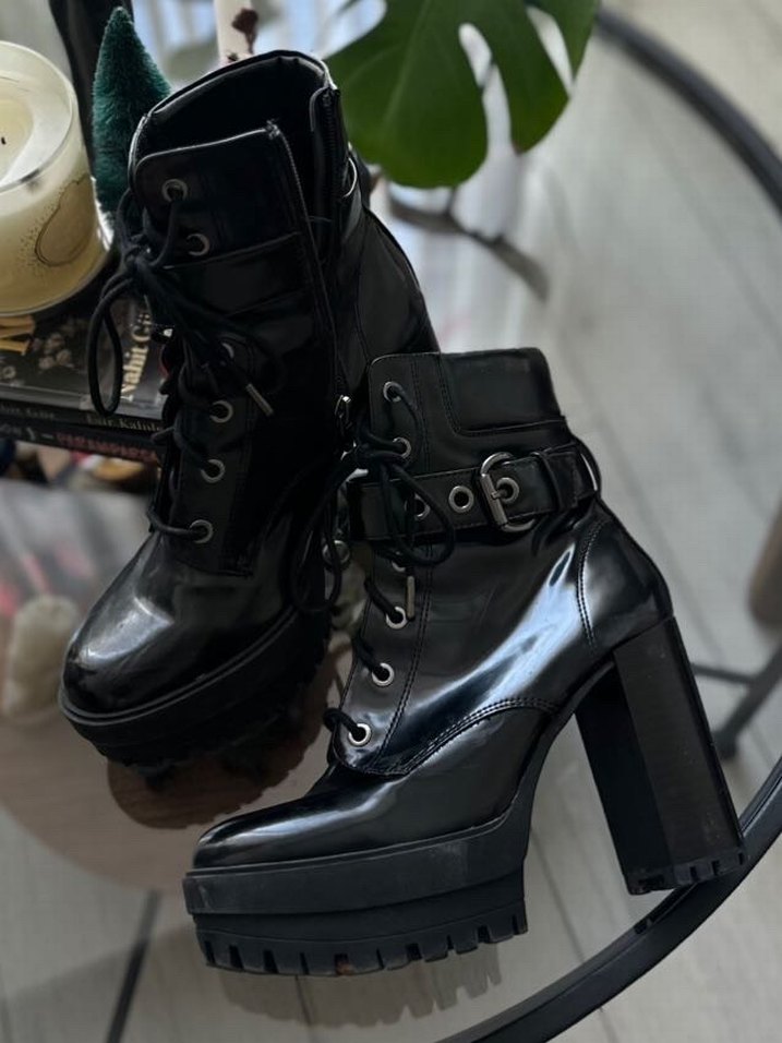 Bershka Siyah Platform Topuklu Gotik Deri Bot
