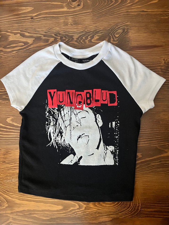 BERSHKA Siyah Rock Punk Baskılı Tişört