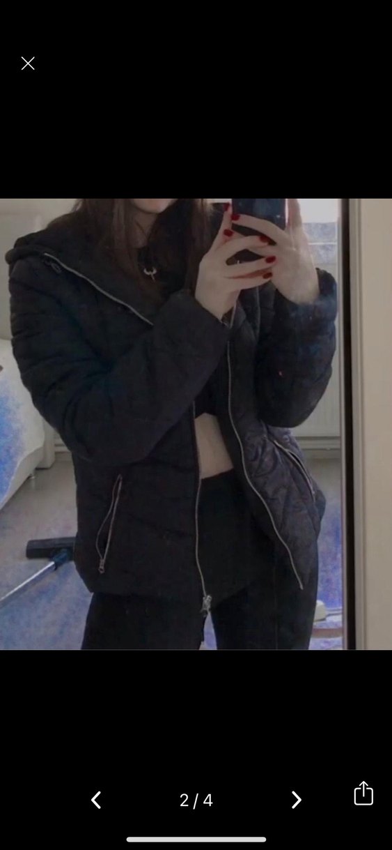 Yüksek yakalı, fermuarlı önü ve uzun kollu siyah midi boyda ve dar kesimdir. Trendy günlük sokak tarzı için uygundur. Sadece 2-3 kere giydim yepyeni