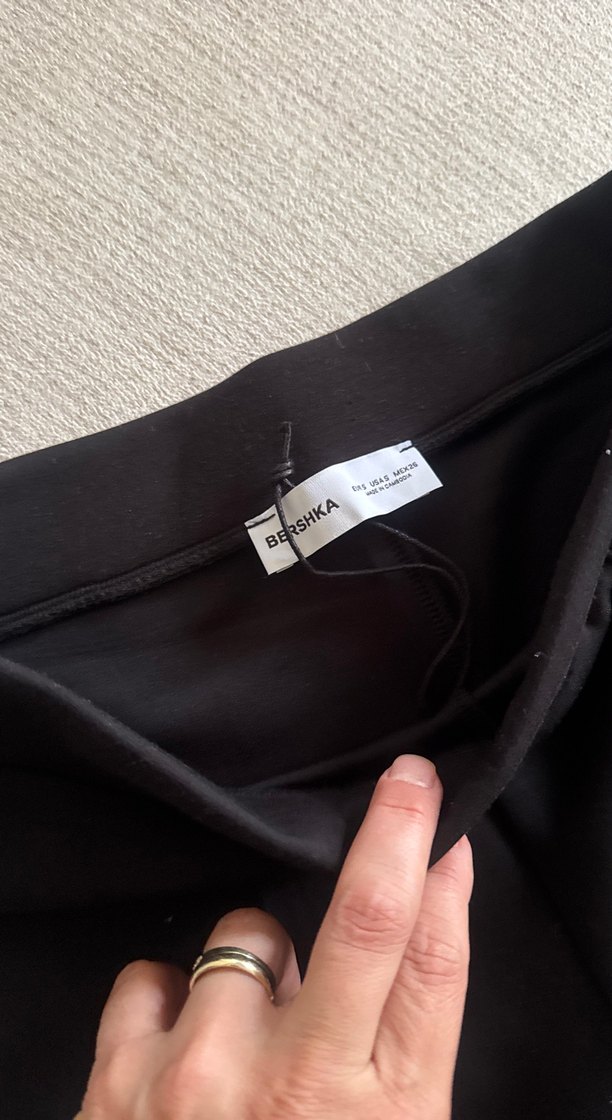 Bershka markasına ait, siyah renkli, esnek pamuk akıcı kumaştan yapılmış, uzun boy, spor pantolon. Günlük kullanıma uygundur.