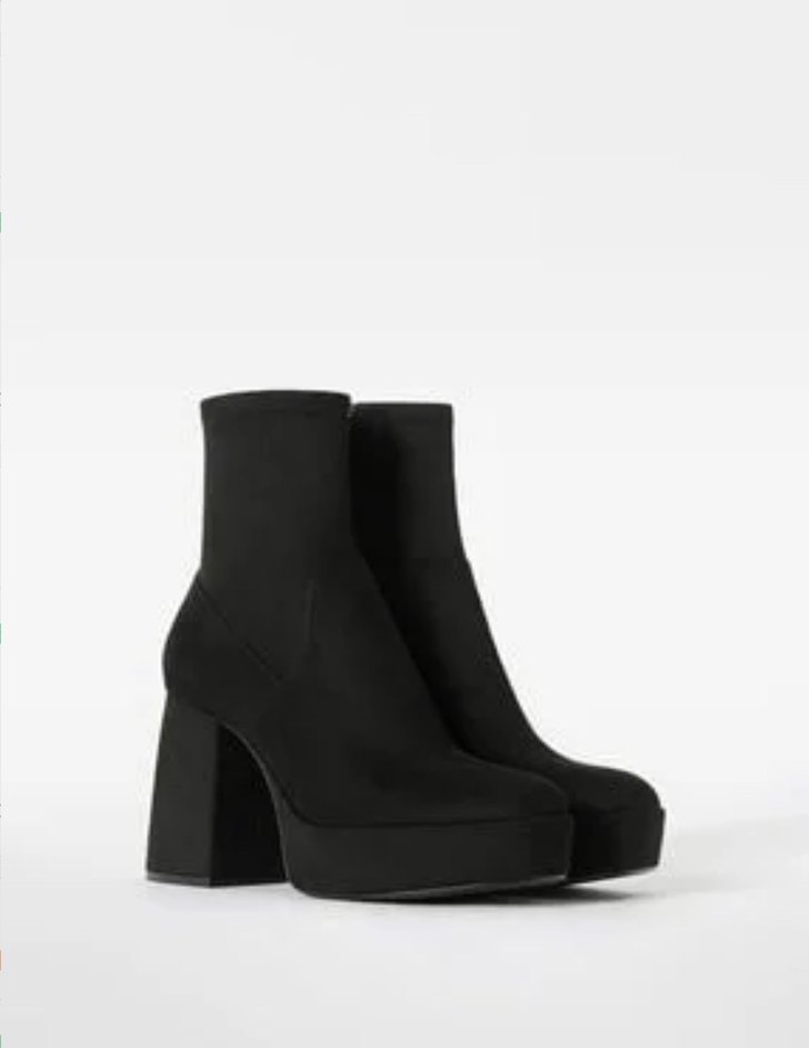 Bershka Siyah Süet Platform Topuklu