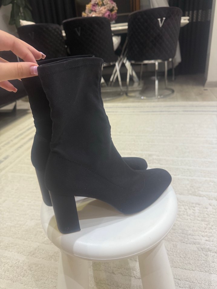 Büyük geldi iade süresi doldu bir kere giydim Siyah elastik materyalden, topuklu kadın çizmesi. Günlük kullanıma uygun, çağdaş ve trend görünümlü.