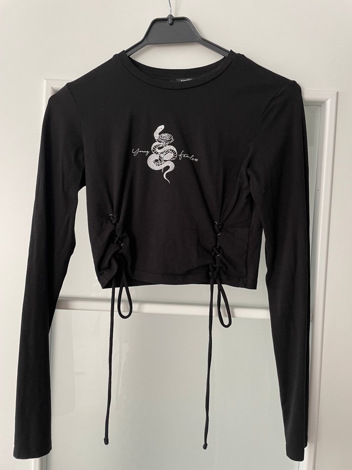 Bershka siyah uzun kol crop