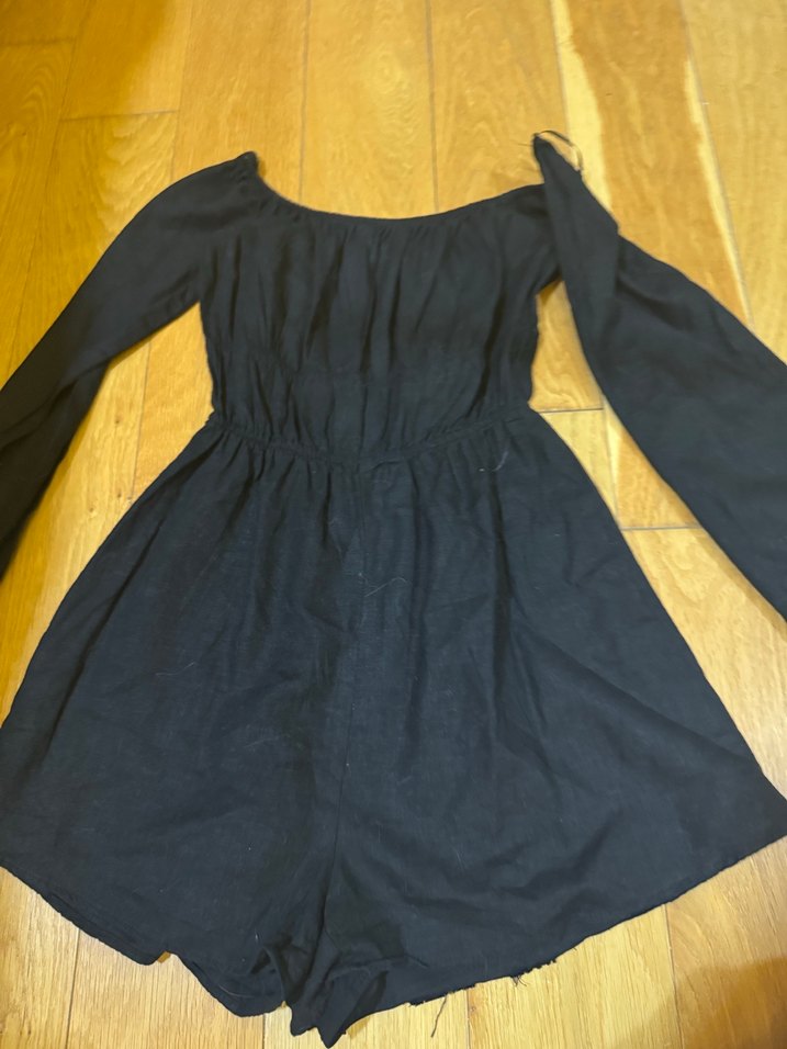 Bershka Siyah Uzun Kollu Straplez Keten Tulum