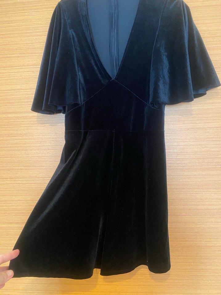 Bu siyah, v yakalı midi elbisdrapeli kısa kollu ve dar kesim olup gotik ve avangart tarzıyla romantik akşamlar için uygundur. 38/40 bedene rahat olur likralı kumaş iki defa özel günde kullanıldı
