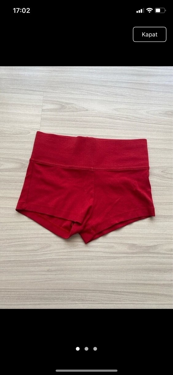 Pamuklu kumaştan, sportif ve sokak stiline uygun kırmızı, dar kesim mini şort.
