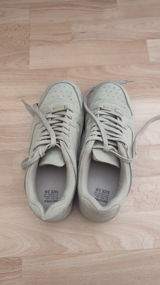 Bej sneakers, stiletto topuklu, spor ve günlük sokak tarzı için uygundur. Desensiz, rahat kauçuk tabanlıdır.Bikaç kez giyildi