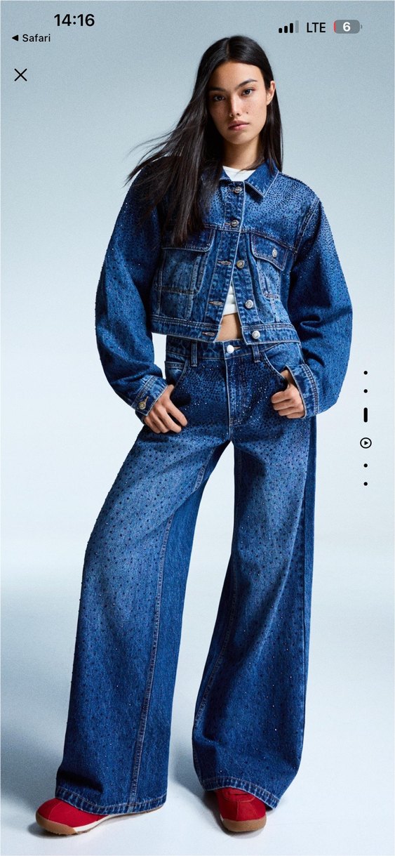 Parlak taşlarla süslenmiş lacivert bol kesim kadın kot pantolon. Midi boy, günlük kullanıma uygun trend sokak stili jeans. ✨