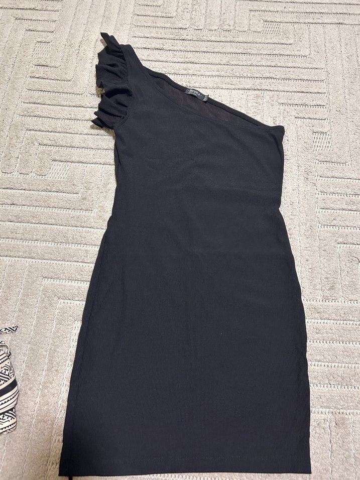Bershka Tek Omuz Drapeli Siyah Midi Elbise