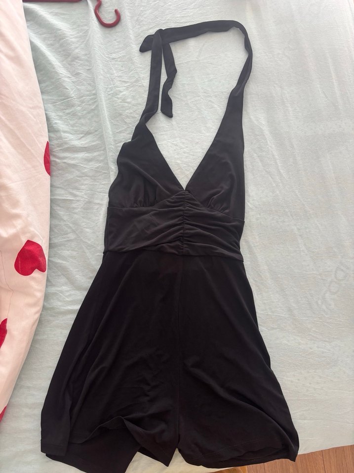 Yazlık bir tulum. Boynundan bağlıyorsunuz. Çok şık ve güzel duruyor, kumaşı da rahat. Birkaç kez giyildi, çok iyi durumda