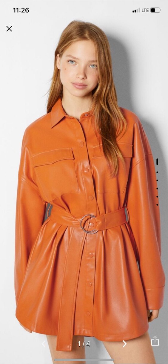 Bershka Turuncu Kadın Deri Kemerli Midi Ceket