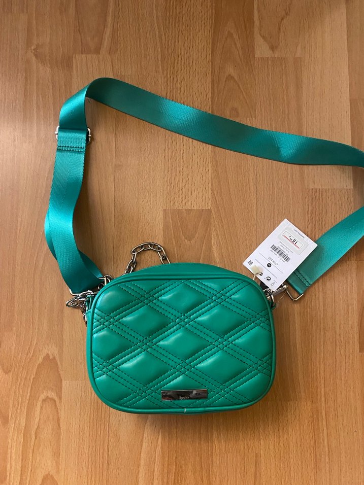 Yeşil renkte çanta.Trend sokak stiline uygun.Bershka orijinal ürün, etiketlidir. Yeşil kalın askısı ve kısa zincir askısı bulunmaktadır.