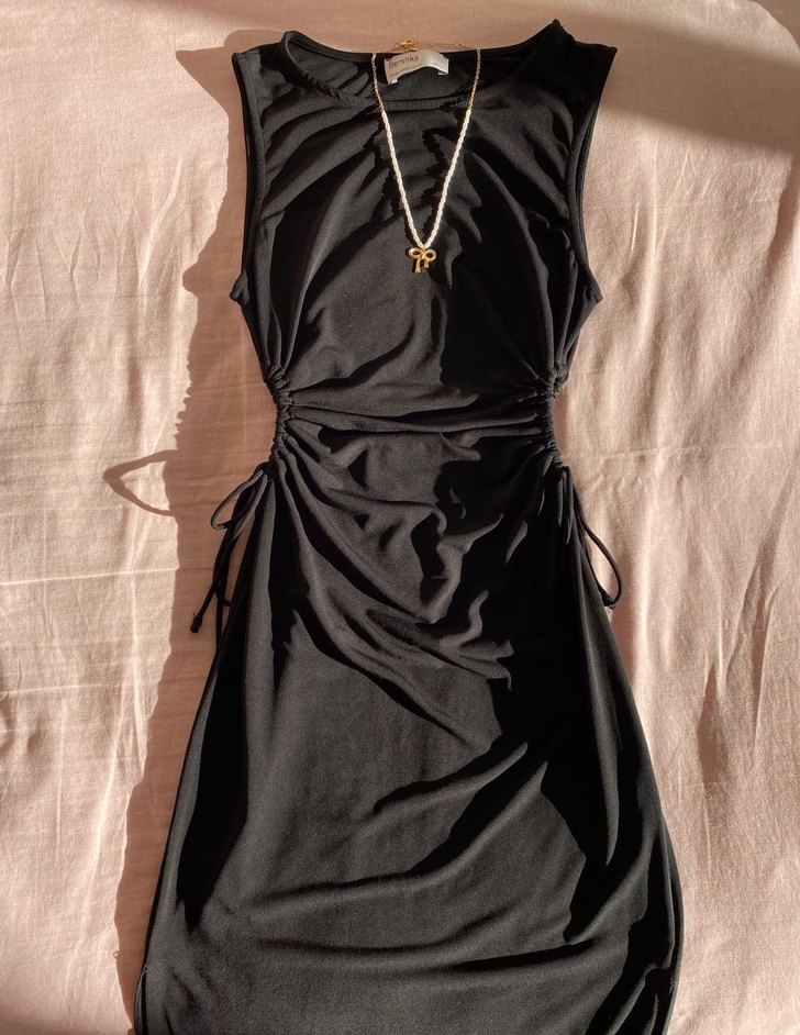 Çok şık bir parça hiçbir kusuru yok. Boyu 114cm belden büzmeli ve iki yanında da çok yüksek olmayan yırtmaçlar var. Kumaşı esnek S'ye de uygun. ✨