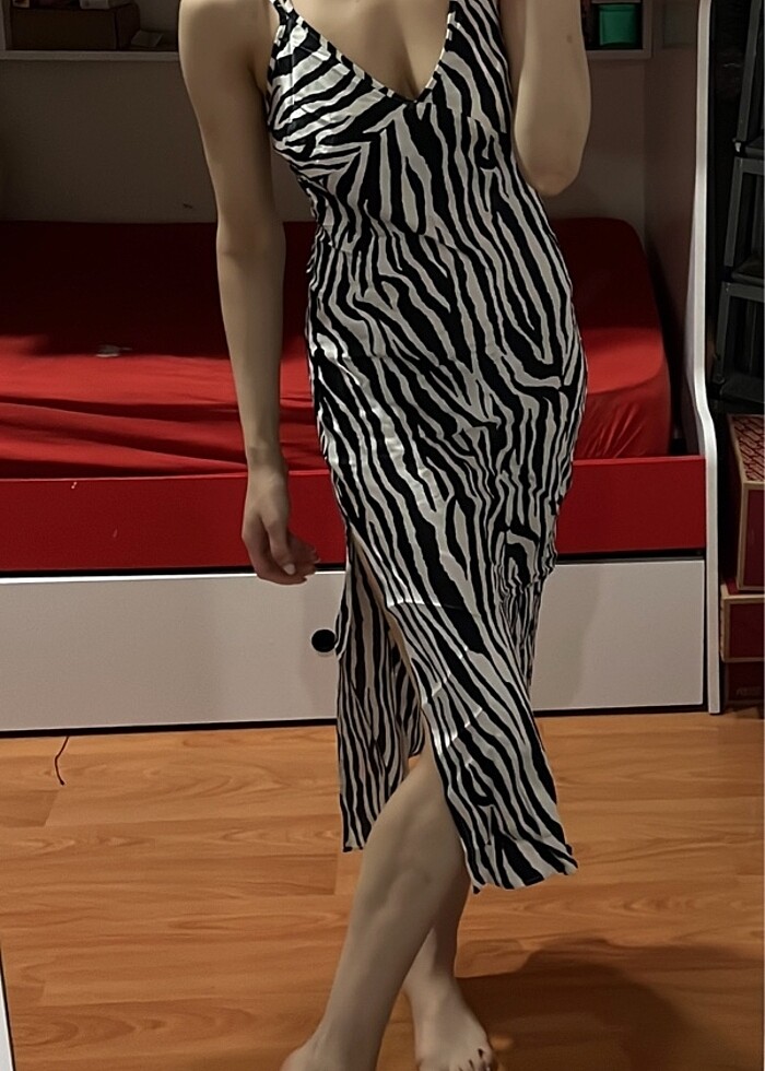 BERSHKA yırtmaçlı zebra desen elbise