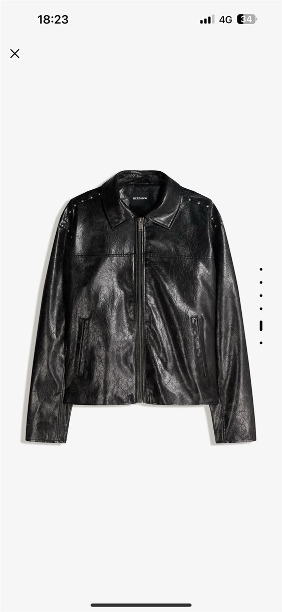 Siyah parlak deri biker ceket, kesik yaka ve fermuarlı öne sahip. Strappy kollu, regular fit tasarımıyla rock punk tarzına uygun.