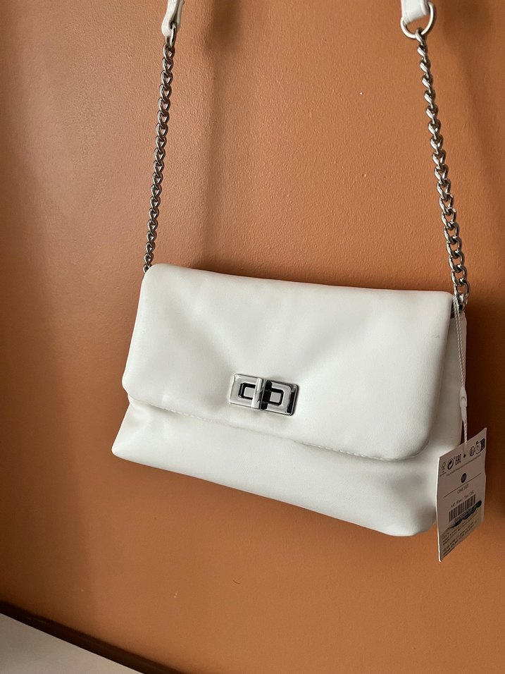 Bershka Zincir Detaylı Beyaz Deri Kadın Çanta