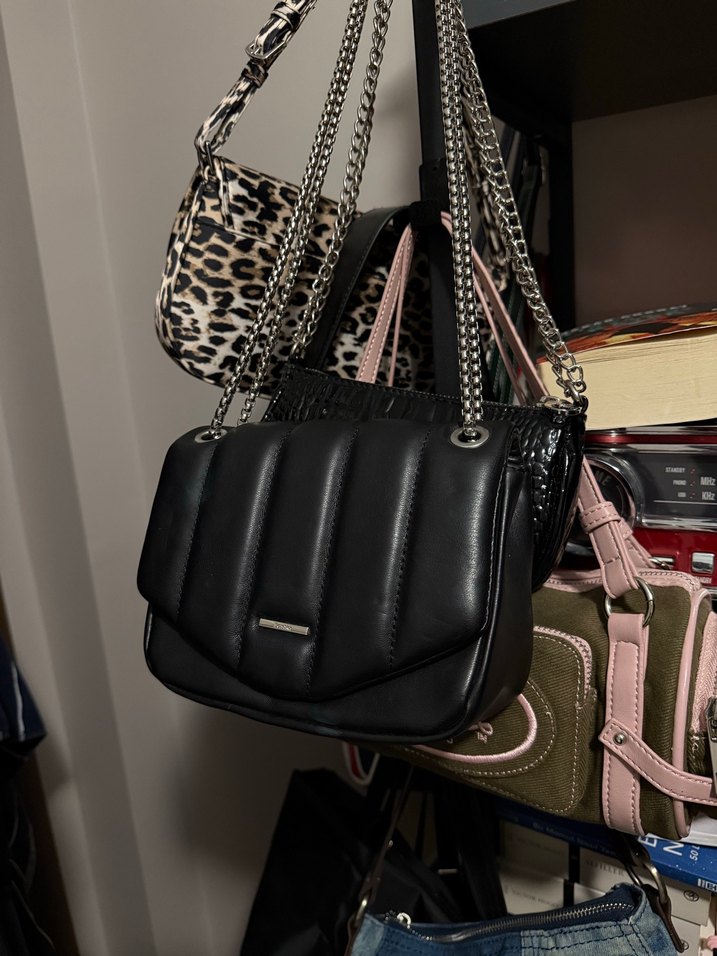 Bershka Zincir Detaylı Siyah Deri Kadın Çanta