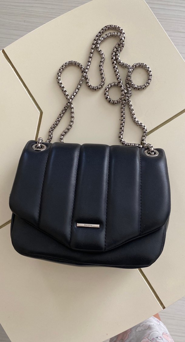 Bershka Zincir Detaylı Siyah Deri Kadın Çanta