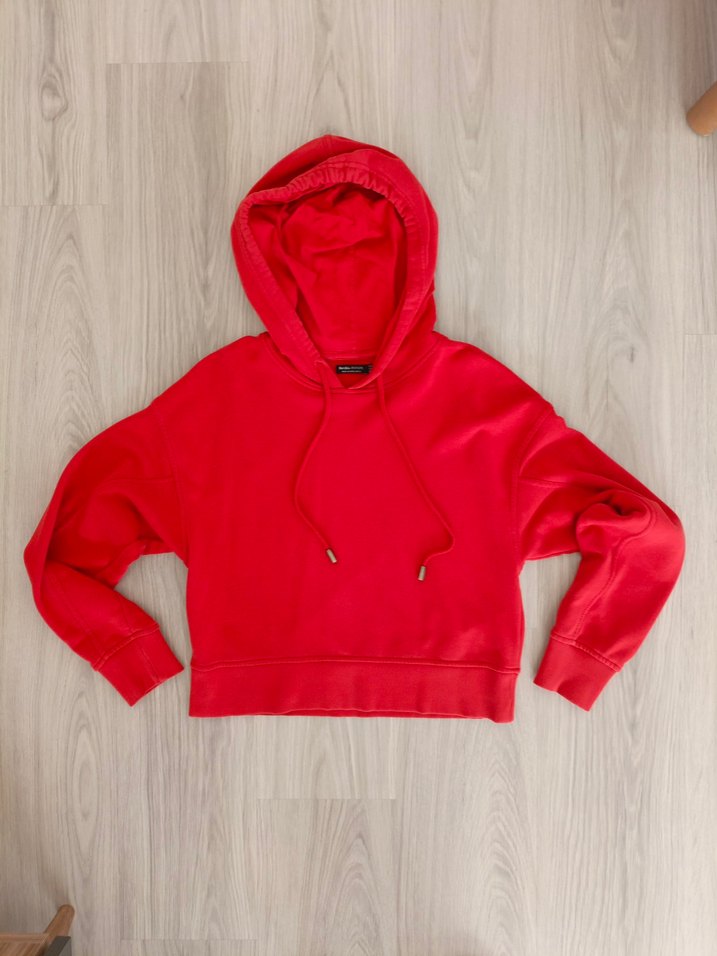 ORJİNAL.Kırmızı kapüşonlu sweatshirt, uzun kollu ve rahat kesim. 1 Kez giyildi. Yumuşak ve sıcak kumaştan üretilmiş, günlük sokak stili için uygun. Polar değl. Ölçü:⭐iki koltuk altı arası 51 cm Boy 52 cm ⭐Rengi kırmızı ve nar çiçeği rengi arası