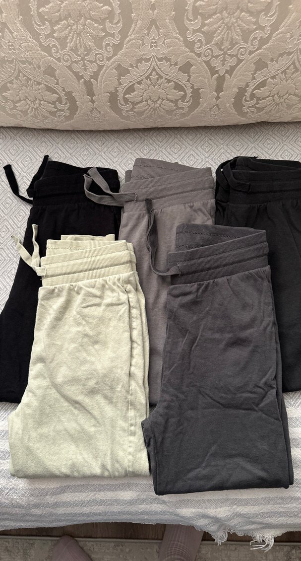 Beş adet Gri Rahat Kesim Kadın Keten Eşofman Altı