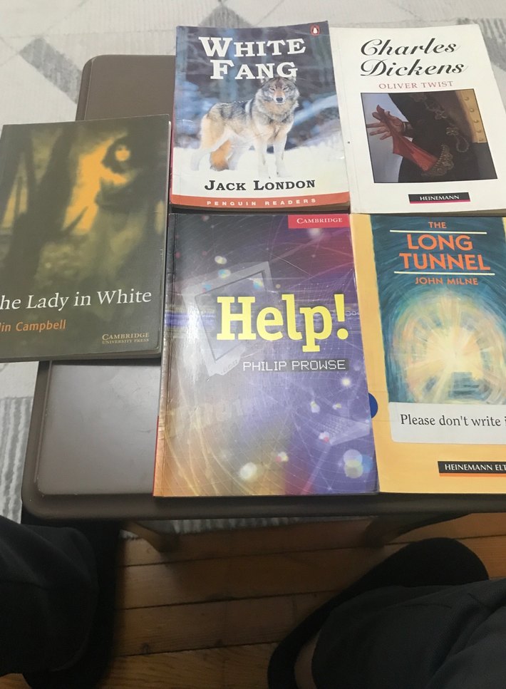 Jack London'dan White Fang, Charles Dickens'tan Oliver Twist ve diğer klasik lise kitaplarından oluşan beşli set. İngilizce hikaye kitabı