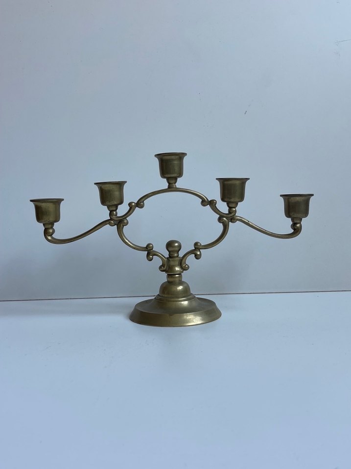 Beş kollu, koyu altın renkli metal şamdan, klasik ve şık tasarıma sahiptir. ️
