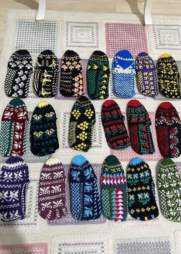 Hepsi elemeyi Göznuru beş şişle örülmüş el örgüsü çeyizlik patikler 38 39 numara ya uygun