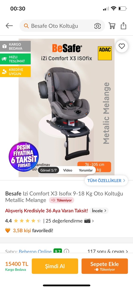 Sorunsuz kılıfı yıkanılabilir ist içi teslim fiyatı uygun tuttum Gri renkli çocuk araba koltuğu, yan destekler ve güvenlik kemeri ile donatılmıştır. Sağlam tabanı sayesinde sabit montaj sağlar.