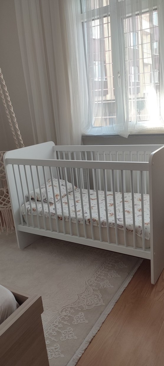 ÇOK AZ KULLANILDI.isterseniz sallanabilir isterseniz sabit kullanma aparatı ile sabit kullanabilirsiniz. iki kademeli resimdeki 2. kademedir küçük bebekler için yüksek kademesi vardır. yatak dahildir. yatağı ortopediktir.İstanbul içi gelip teslim alınabilir.