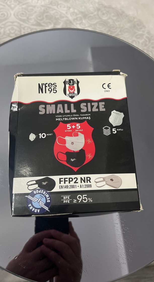 Beşiktaş logosu bulunan 5 siyah ve 5 beyaz küçük boy FFP2 maske. %95 üzeri filtreleme sağlayan meltblown kumaştan üretilmiştir. EN149:2001+A1:2009 standartlarına uygundur.