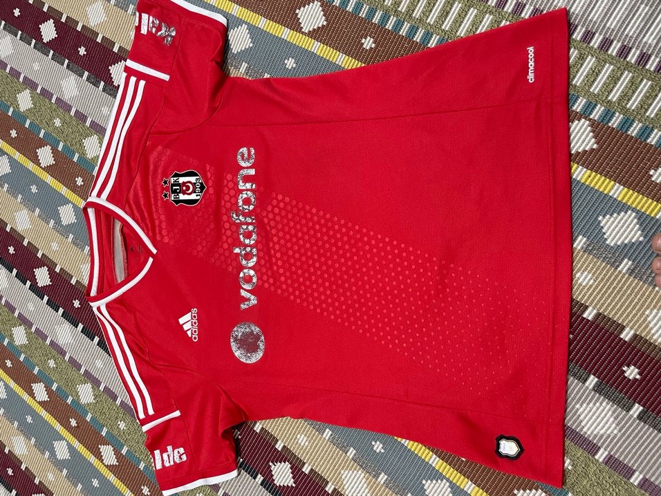 Parlak kırmızı sentetik kumaştan, V-yaka ve kısa kollu, düğmeli, baskılı ve dar kesim erkek spor forması. Sokak stiline uygun, 'Ide' yazılı detaylı. ⚽