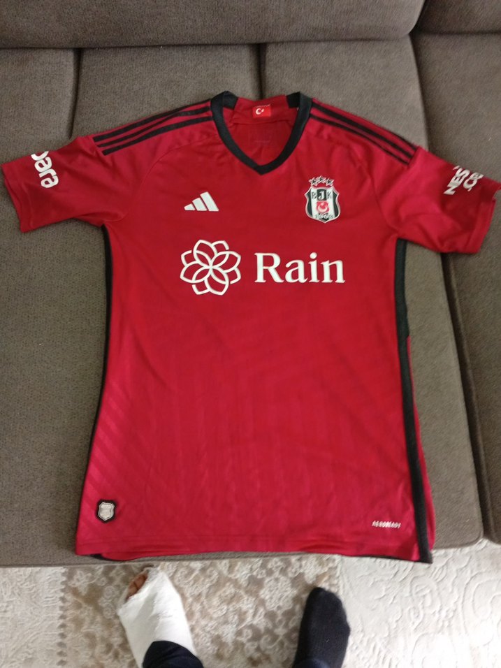 Koyu kırmızı renkte, kısa kollu ve bisiklet yaka, dar kesim erkek spor forması. Sentetik kumaştan, baskılı desenli ve cırt cırt detaylıdır. Spor ve günlük kullanıma uygundur. ⚽